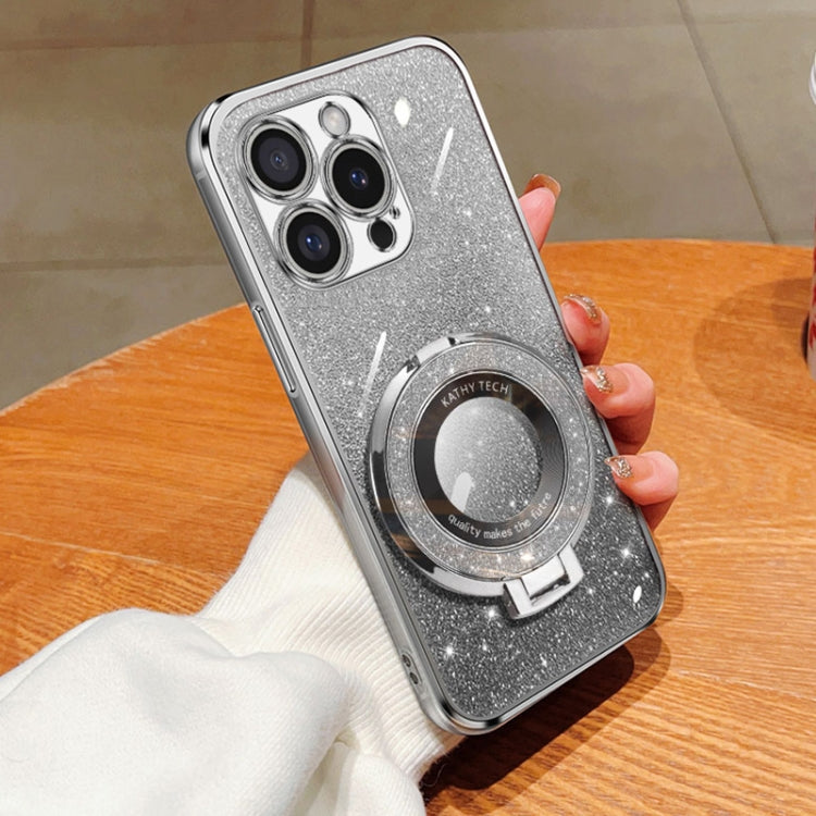 Estuche para Teléfono Magsafe PC con Soporte Giratorio Anillo de Hielo para iPhone 16 Pro (Plateado)
