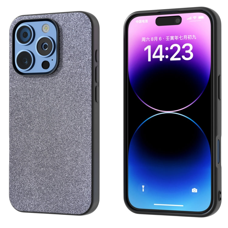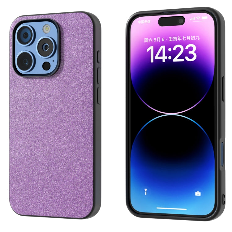Funda para iPhone 16 Pro Marco Negro Purpurina Prueba de Golpes (Morado)