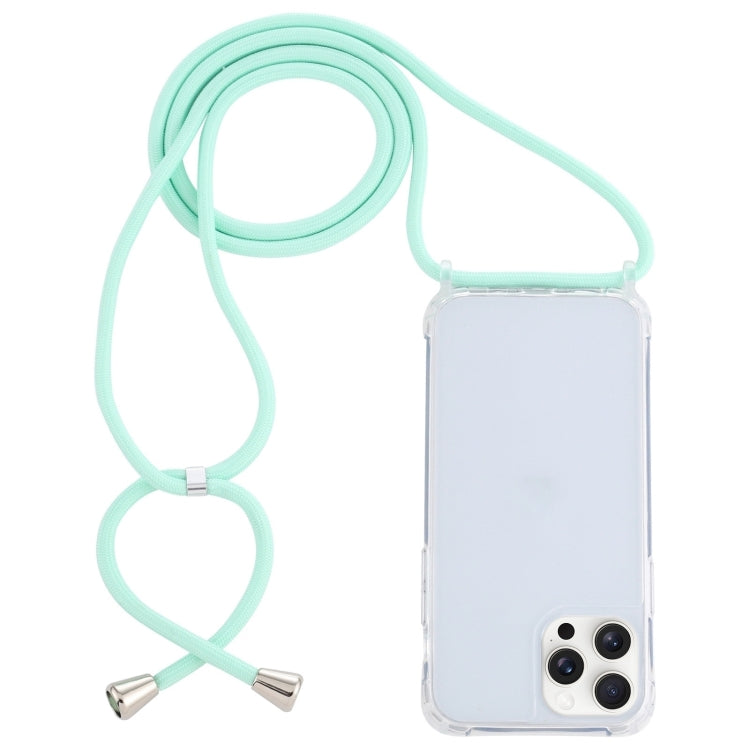 Funda Protectora para iPhone 16 Pro Acrílico Transparente a Prueba de Golpes con Cordón (Verde Menta)