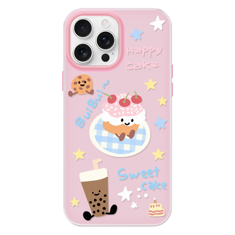 Funda híbrida TPU y PC para iPhone 16 Pro con soporte para tartas de postre (Blanco)