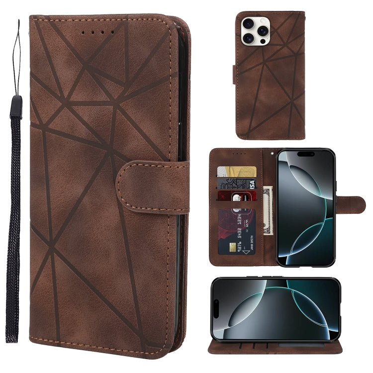 Funda de Cuero iPhone 16 Pro Líneas Geométricas Tacto Sedoso (Marrón)