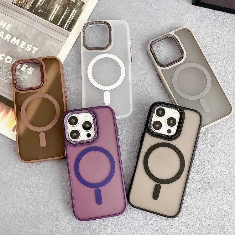 Funda Híbrida TPU y PC para iPhone 16 Magsafe con Marco de Lente de Diamante (Morado)