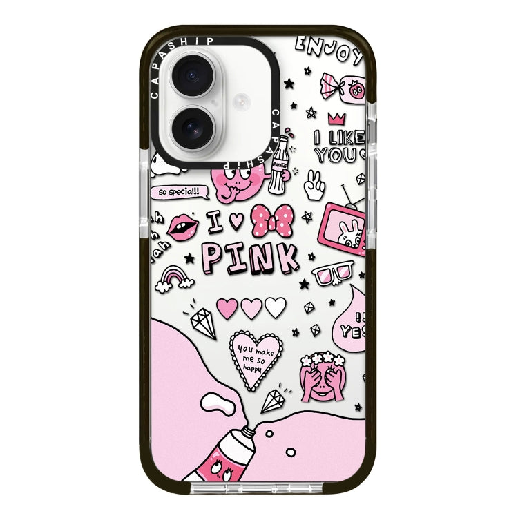 Funda para Teléfono iPhone 16 Cobertura Total Patrón Ilustración Simple (Etiqueta de Texto B)