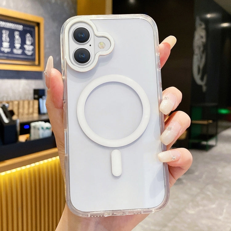 Funda TPU Magsafe Wave para iPhone 16 con Marco de Lente Plateado (Blanca)