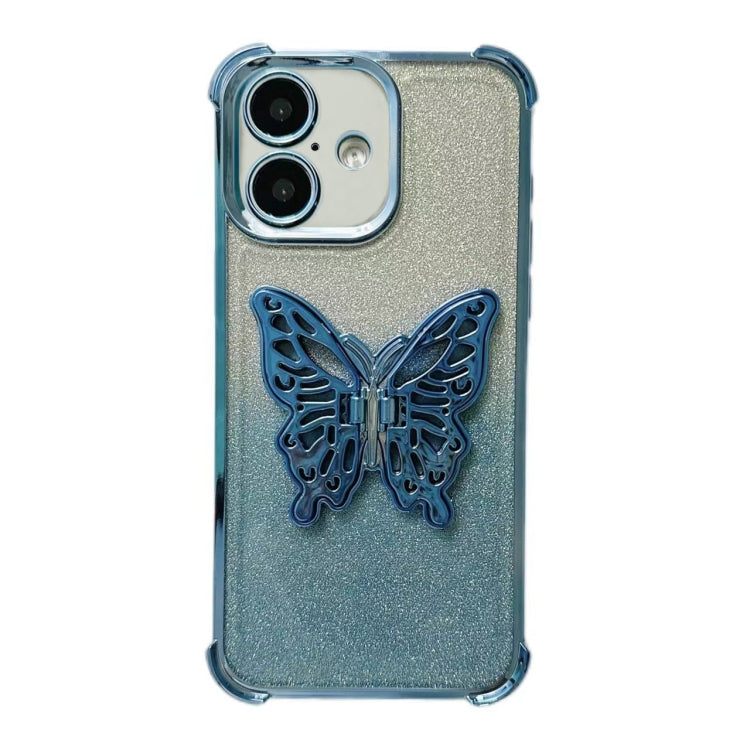 Funda para iPhone 16 TPU con Purpurina Galvanizada 3D y Diseño Mariposa (Azul Degradado)