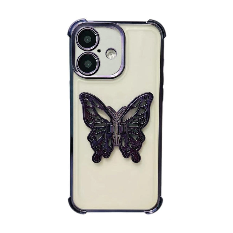 Funda TPU con Soporte Mariposa 3D Galvanizada para iPhone 16 (Morado)