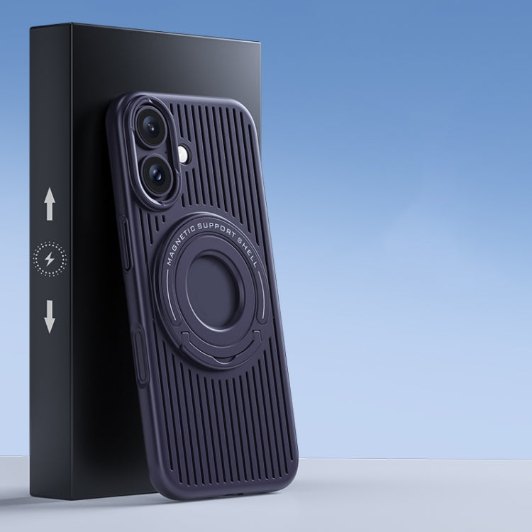 Estuche Magnético para Teléfono Magsafe iPhone 16 con Soporte y Refrigeración (Azul Oscuro)