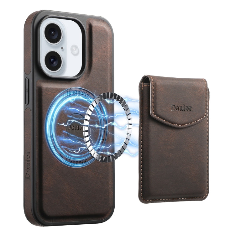 Funda Trasera de Pu Denior D09 para iPhone 16 con Ranura para Dos Tarjetas (Marrón)