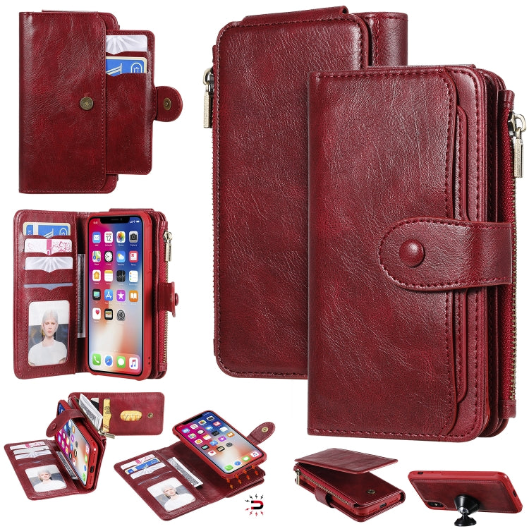 Estuche de Cuero iPhone X Xs Tapa Horizontal Magnética Desmontable Multifuncional (Rojo)