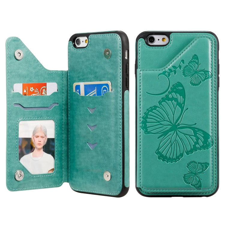 Funda Protectora iPhone 6 Plus Estampado Mariposa Soporte Ranuras Tarjetas Marco Fotos (Verde)