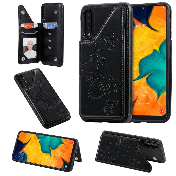 Funda Protectora Galaxy A50 Patrón Mariposa Soporte Ranuras Tarjetas Marco Fotos (Negro)