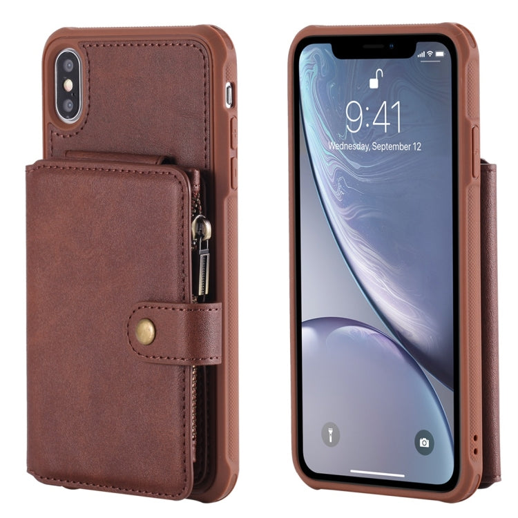 Funda Protectora para iPhone Xr con Cremallera Ranuras para Tarjetas Soporte y Billetera (Café)