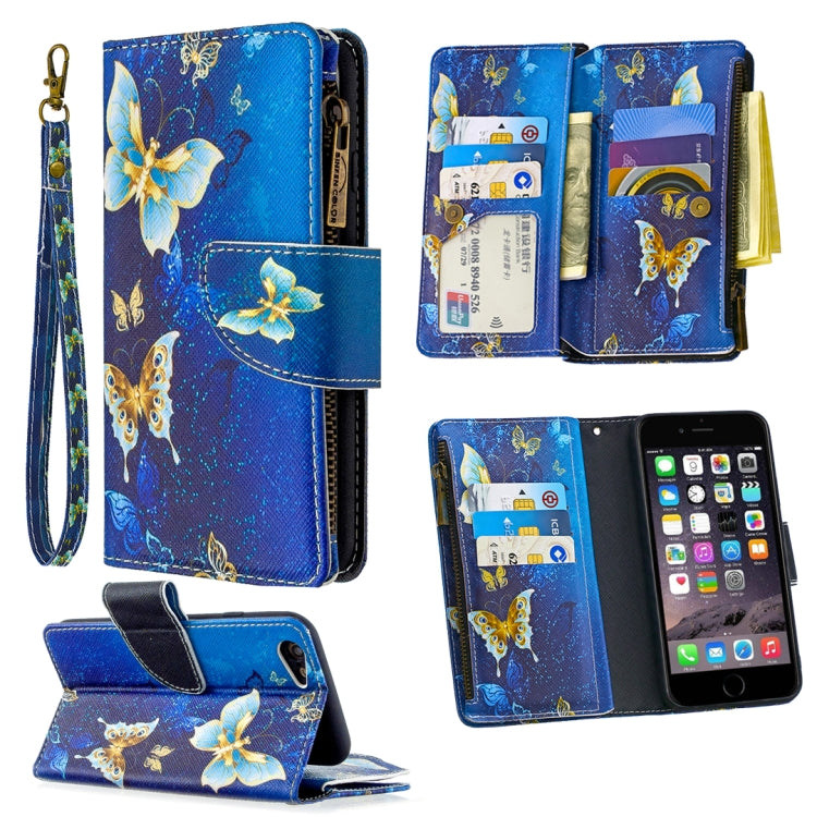 Funda de Cuero iPhone 6S y 6 Patrón Dibujo Colores con Cremallera Soporte y Ranuras (Mariposa Dorada)