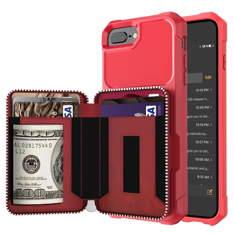 Bolsa de Tarjeta con Cremallera para iPhone 7 Plus 8 Plus 6 Plus (Rojo)