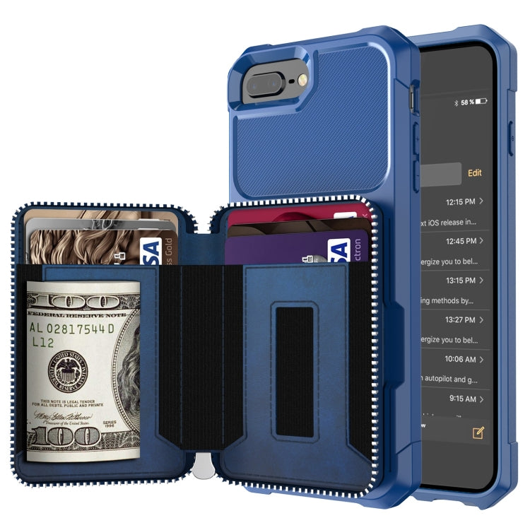 Bolsa de Billetera Zipper Bag Case Back para iPhone 7 Plus 8 Plus 6 Plus (Azul)