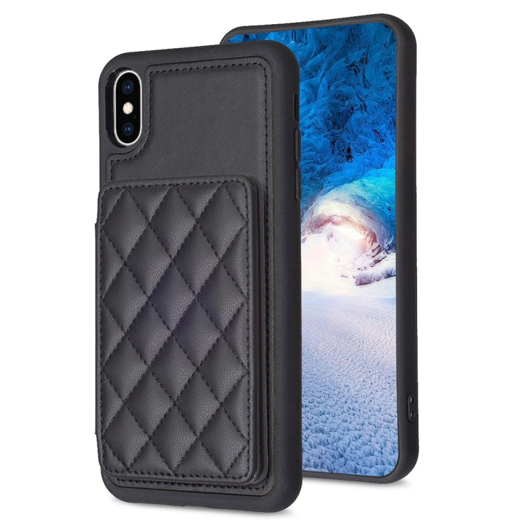 Funda para iPhone Xs Max Bf25 Square Plaid Card Bag Holder Phone Case (Negro)