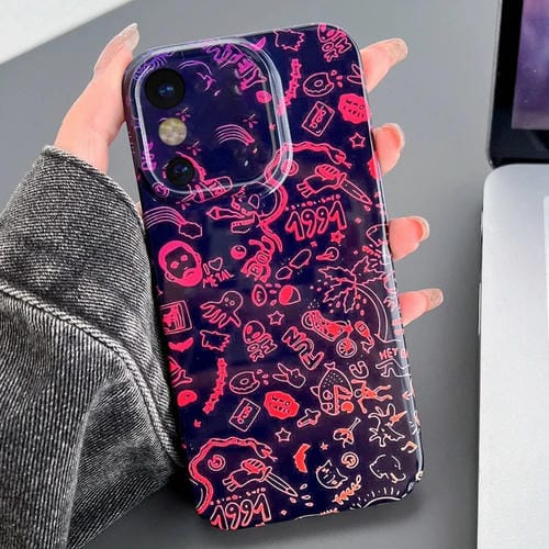 Estuche para teléfono iPhone Xr PC con Orificio Preciso y Patrón Pintado (Púrpura Negro)
