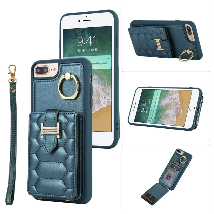 Funda para iPhone 8 Plus y 7 Plus Vertical Card Bag Ring Holder con Doble Cordón (Verde Oscuro)