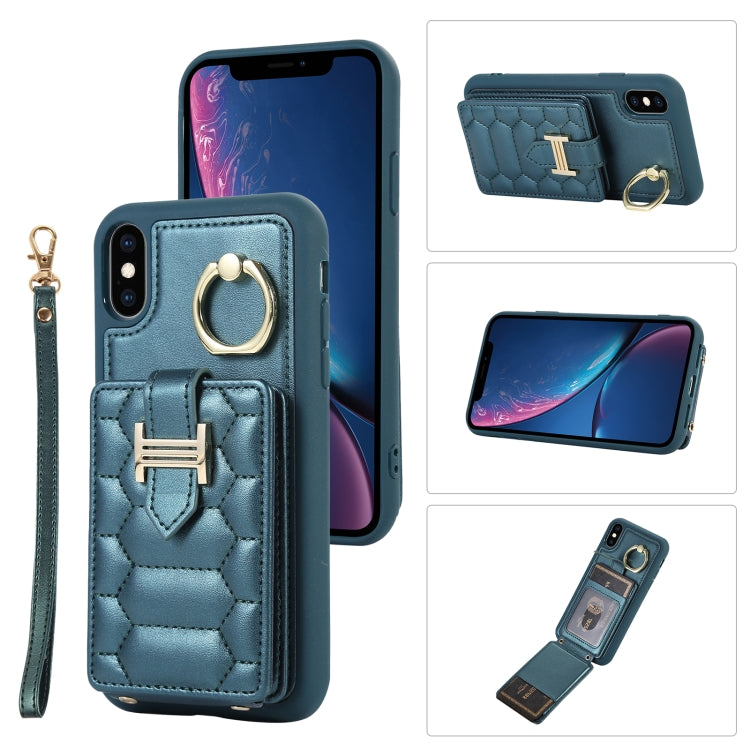 Funda para teléfono iPhone Xs Vertical Card Bag Ring Holder con doble cordón (Púrpura)