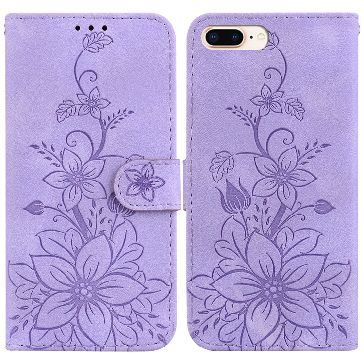 Funda de Cuero Apple iPhone 8 Plus/7 Plus con Relieve Lily (Púrpura)