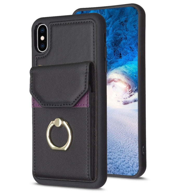Funda para Teléfono iPhone X / Xs Bf29 con Soporte para Anillo y Bolsa para Tarjeta de Órgano (Púrpura)
