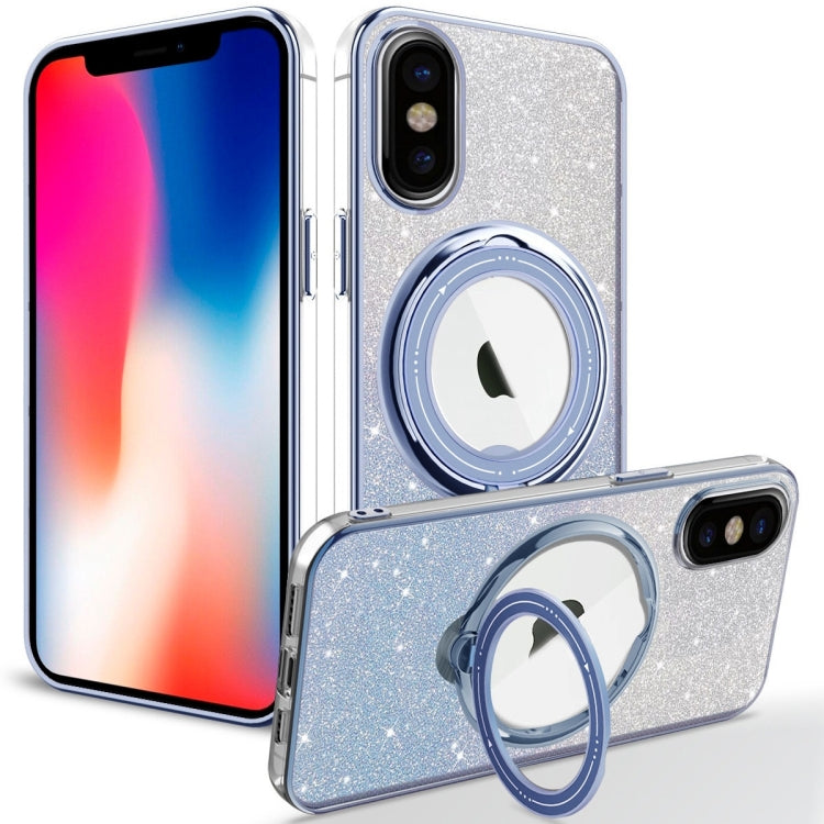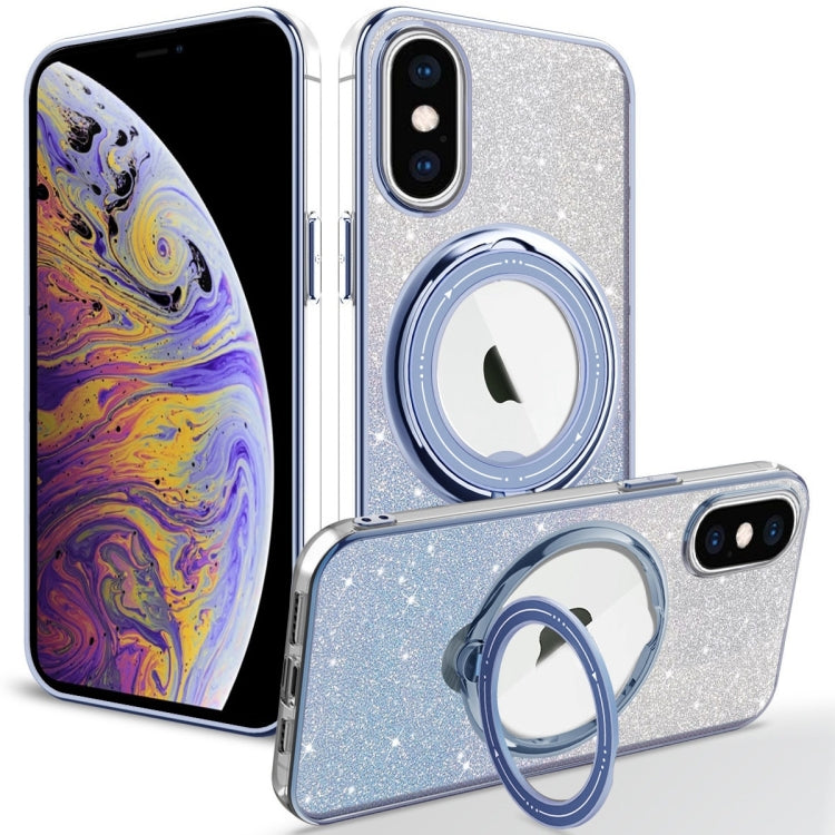 Estuche para teléfono TPU iPhone Xs Max Rotation Magsafe Holder con brillo degradado (Azul Sierra)