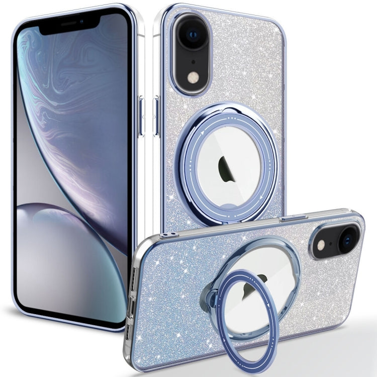 Funda TPU con Purpurina Degradada y Soporte Giratorio Magsafe para iPhone Xr (Morado Noche)