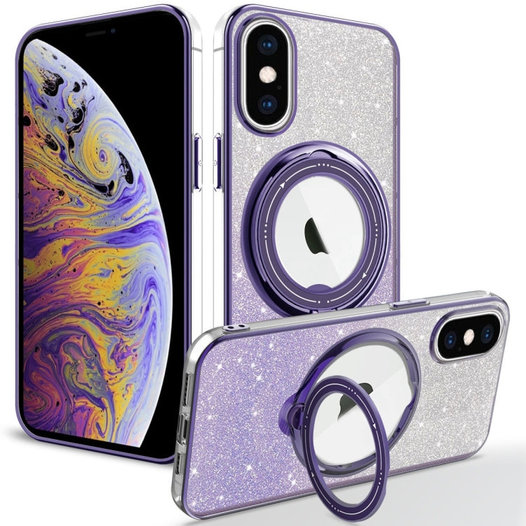 Funda TPU con Purpurina Degradada y Soporte Magsafe Giratorio para iPhone Xs Max (Morado Noche)