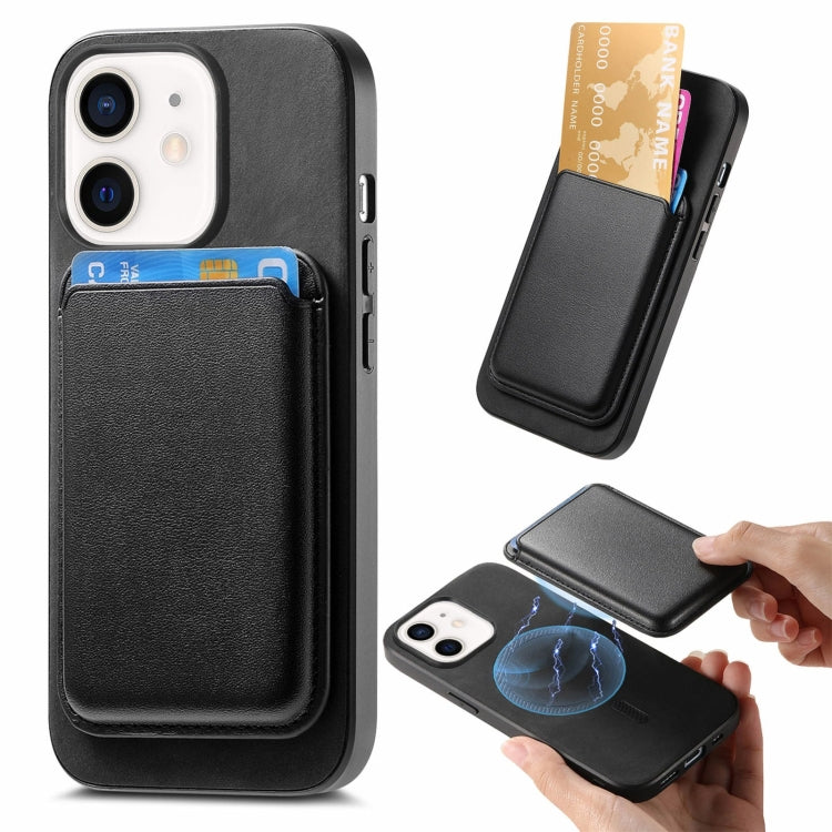 Funda para Teléfono iPhone 12 Retro Magsafe Card Bag Pu con Contraportada (Negro)