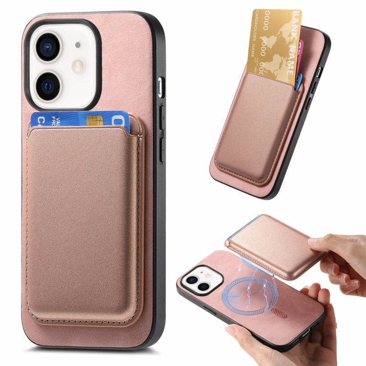 Funda para Teléfono iPhone 11 Retro Magsafe Card Bag Pu con Contraportada (Rosa)