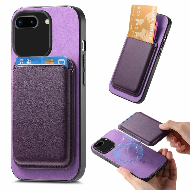 Funda para teléfono iPhone 14 Pro Max Retro Magsafe Card Bag PU con Contraportada (Púrpura)