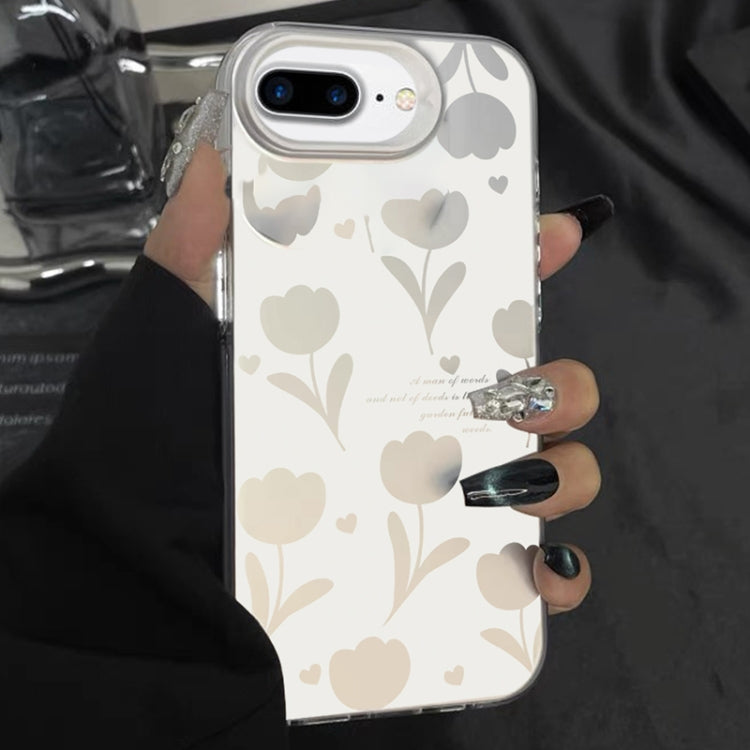 Funda híbrida para iPhone 7 Plus/8 Plus TPU para PC con pintura plateada (Tulipanes Huecos Blancos)