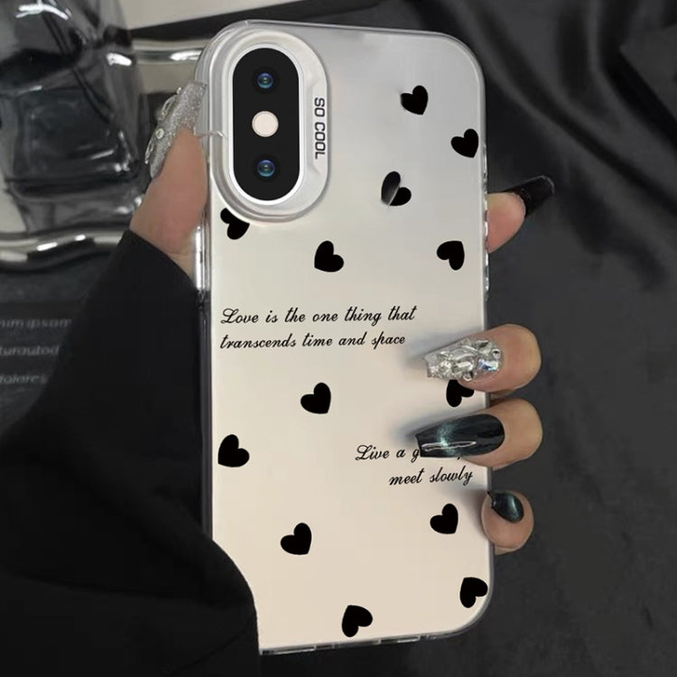 Funda híbrida para iPhone Xs Max TPU para PC con Pintura Plateada (Love Hearts Black)