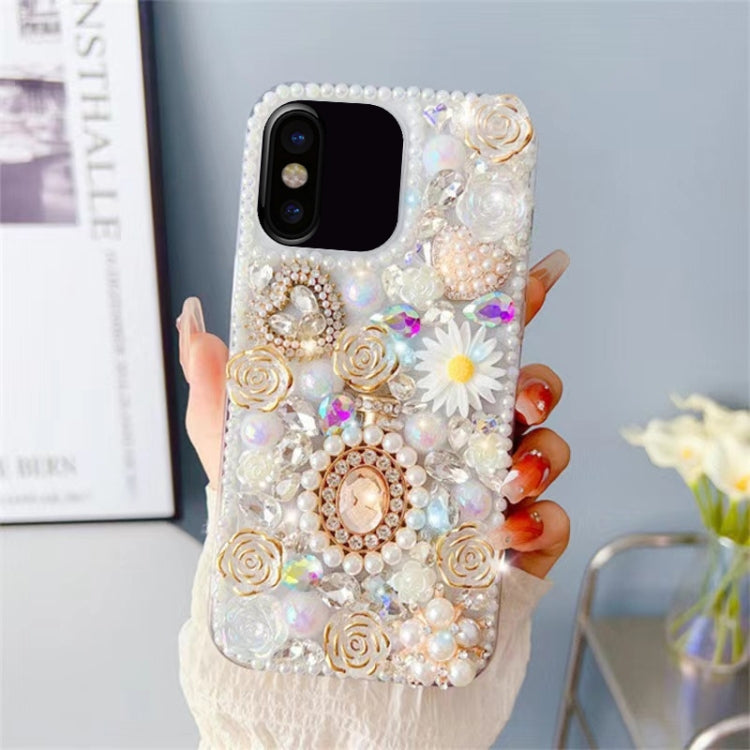 Estuche para Teléfono iPhone Xs Max con Incrustaciones de Diamantes y Rosas para PC (Blanco)
