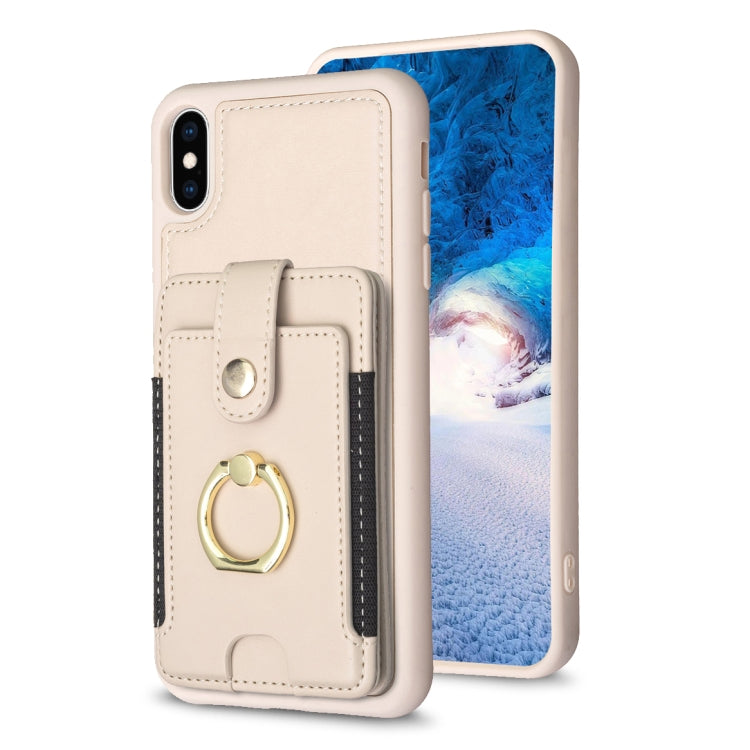 Caja de teléfono para iPhone X Xs Bf27 con soporte para tarjeta y anillo de metal (Beige)
