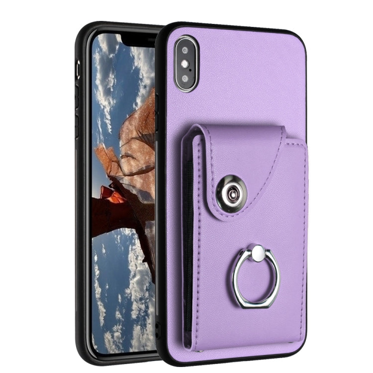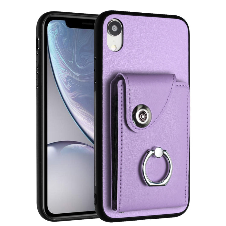 Funda para Teléfono iPhone Xr con Soporte para Anillo y Bolsa para Tarjeta (Púrpura)