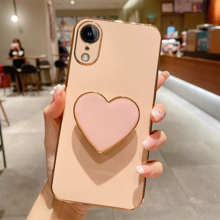 Funda para Teléfono iPhone Xr Galvanoplastia Love Heart Holder TPU (Rosa)