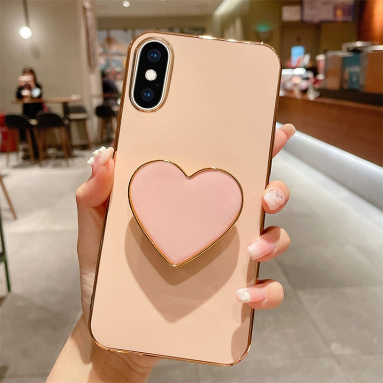 Funda para Teléfono TPU Apple iPhone X / Xs Galvanoplastia Love Heart Holder (Rosa)