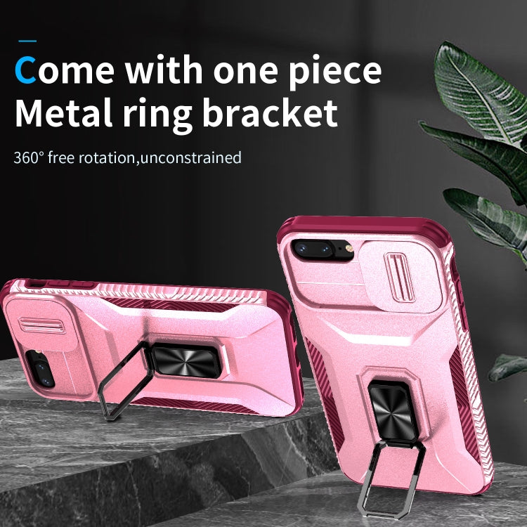 Estuche para Teléfono iPhone 7 Plus con Soporte Deslizante para Levas (Rosa + Rojo Rosa)