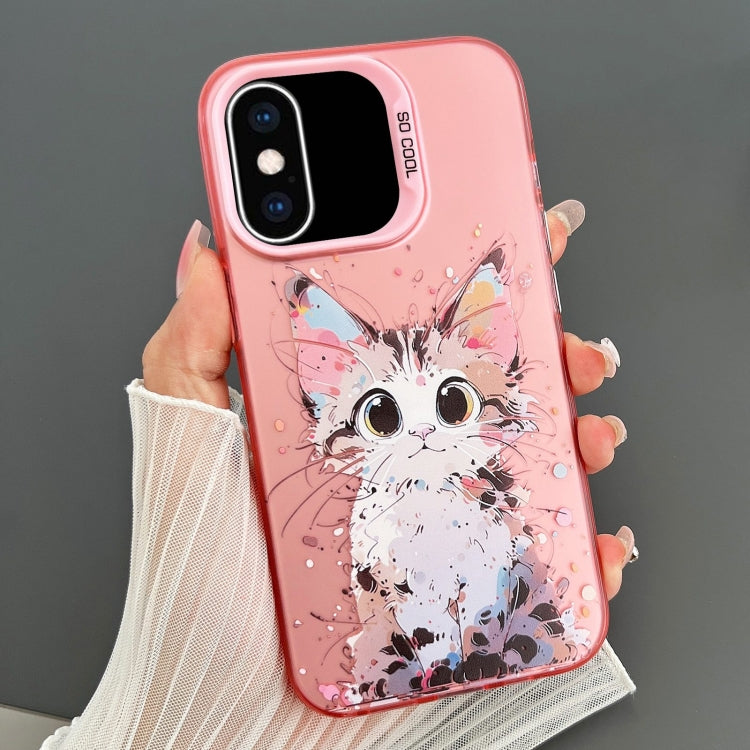 Pour iPhone XS Max IMD Animal Graffiti TPU + PC Étui de téléphone double face (Chat étourdi)
