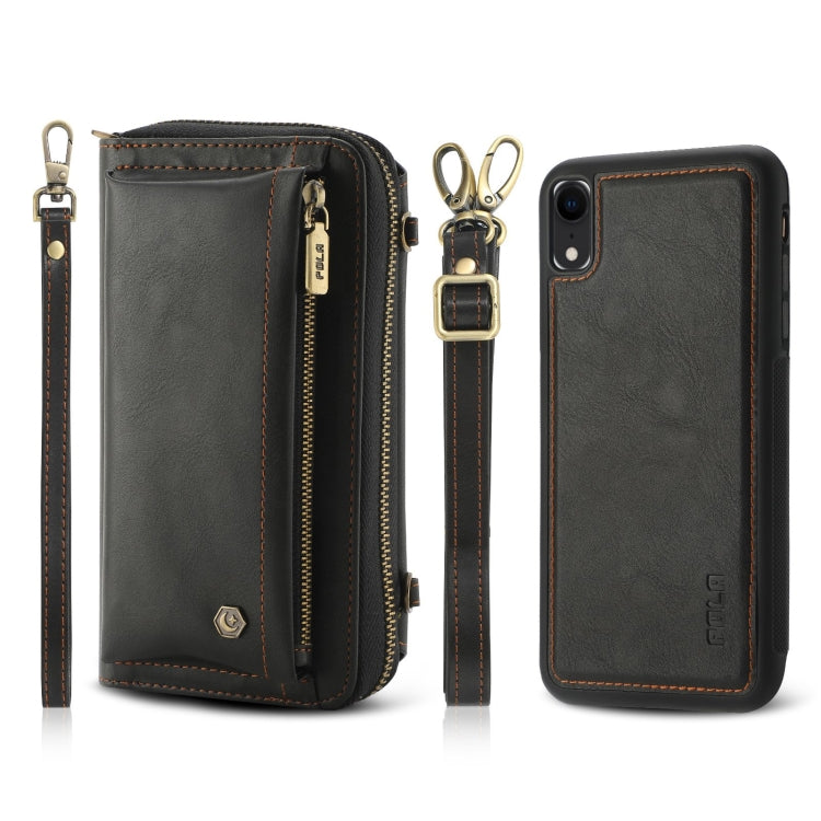 Funda de Cuero Crossbody para iPhone Xr con Billetera y Cremallera Multifuncional (Negro)
