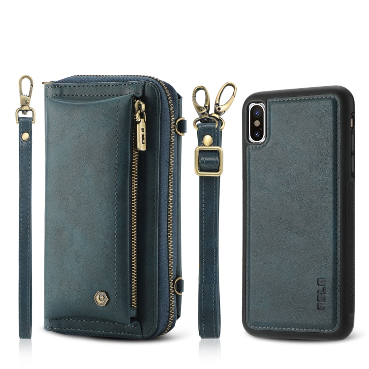 Funda para teléfono iPhone X Crossbody de cuero con billetera y cremallera multifuncional (Marrón)