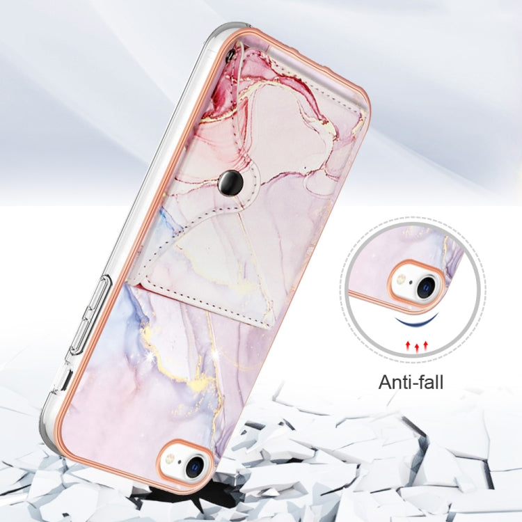 Funda para teléfono iPhone SE 2022/SE 2020/8/7 con ranura para tarjeta IMD patrón Mármol (Oro Rosa)