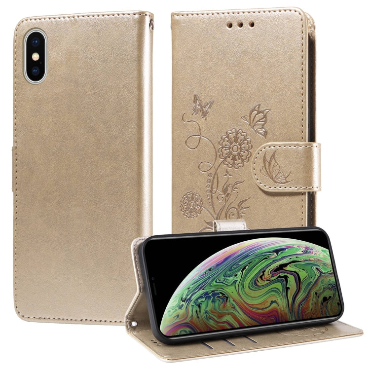 Funda de Cuero con Diseño de Mariposas y Flores en Relieve para iPhone Xs Max (Oro Rosa)