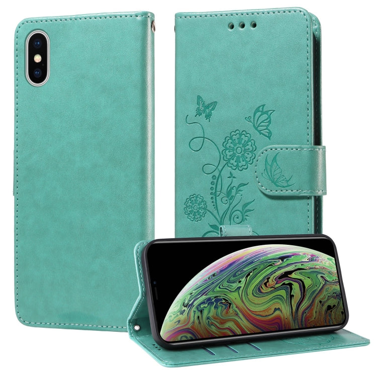 Funda de Piel para iPhone Xs Max Diseño de Mariposas y Flores en Relieve (Verde)