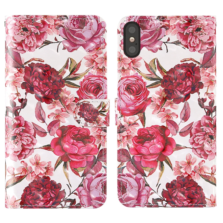 Funda para iPhone X TPU + Cuero PU Flip Horizontal con Soporte y Ranuras (Pequeña Flor Roja)