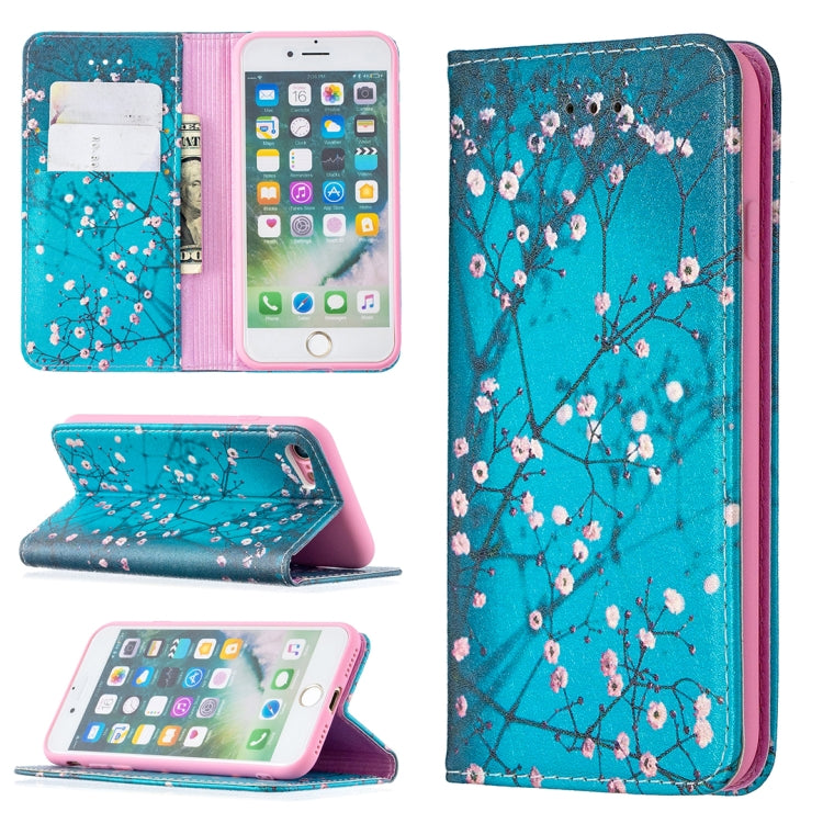 Estuche de Cuero Pu iPhone 8 y 7 con Tapa Horizontal Magnética Soporte y Ranuras (Plum Blossom)