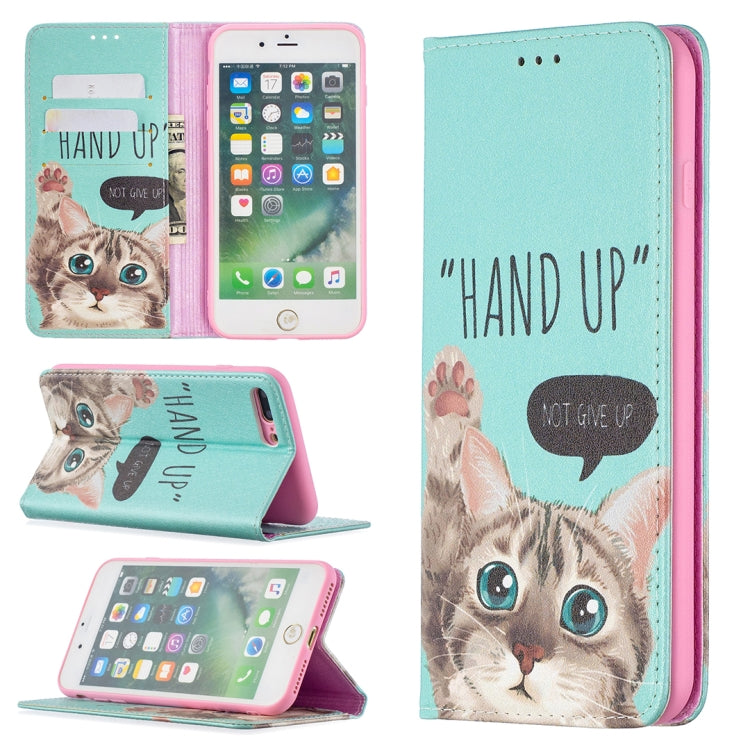 Funda de Cuero Pu con Tapa Horizontal Magnética Invisible para iPhone 8 Plus y 7 Plus (Gato)