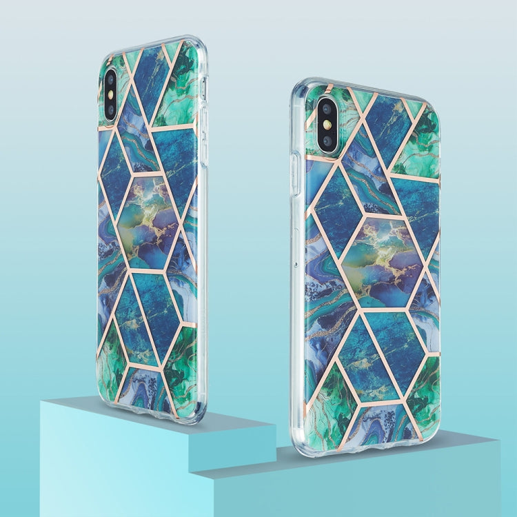 Funda Protectora TPU para iPhone Xr 3D Galvanoplastia Patrón de Mármol (Verde Azul)