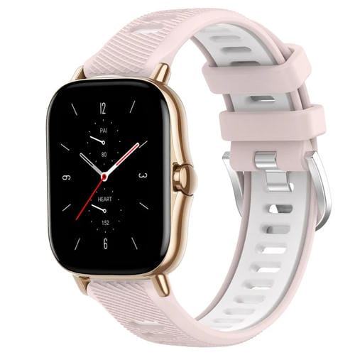 Correa de Reloj Amazfit GTS 2 22mm silicona textura cruzada con hebilla acero (Rosa + Blanco)